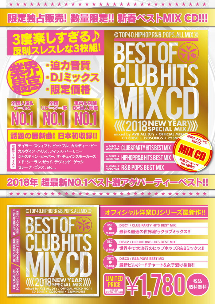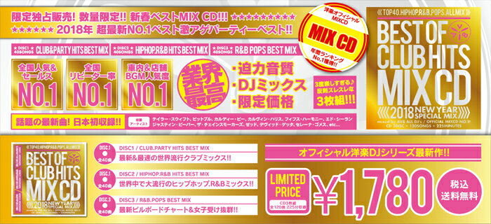 「限定独占販売 2018年 超最新NO.ベスト!!」《送料無料/MIXCD/NEW-001》BEST OF CLUB HITS MIXCD -2018 NEW YEAR SPECIAL MIX-《洋楽 Mix CD /洋楽 CD/2017年 ベスト CD》《メーカー直送/輸入盤》